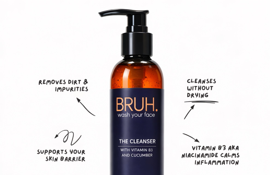 Most people strip their skin with harsh soaps, leading to breakouts and irritation. The Bruh Skin cleanser is designed to remove the “grime of the day” sweat, oil, and environmental pollutants without compromising the skin’s natural barrier. It leaves the face feeling clean but not “tight,” which is a crucial distinction for those who are new to specialized skincare.